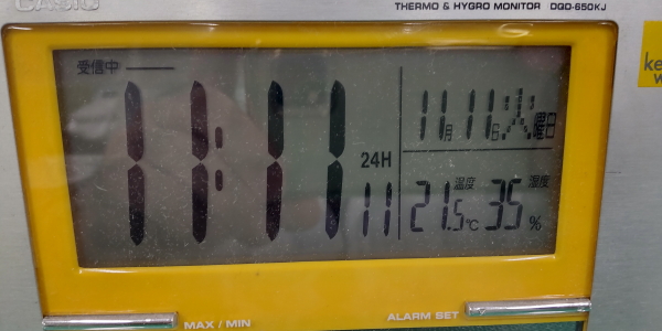 | 2025年 11月11日 今日は1並びの日 11時11分11秒 下の写真は偶然にも 気温 11.1度 |